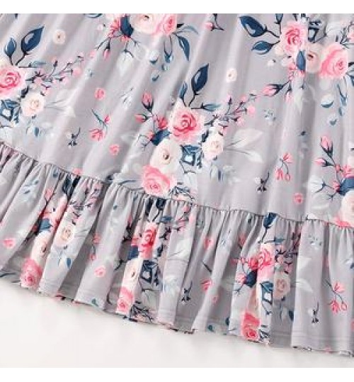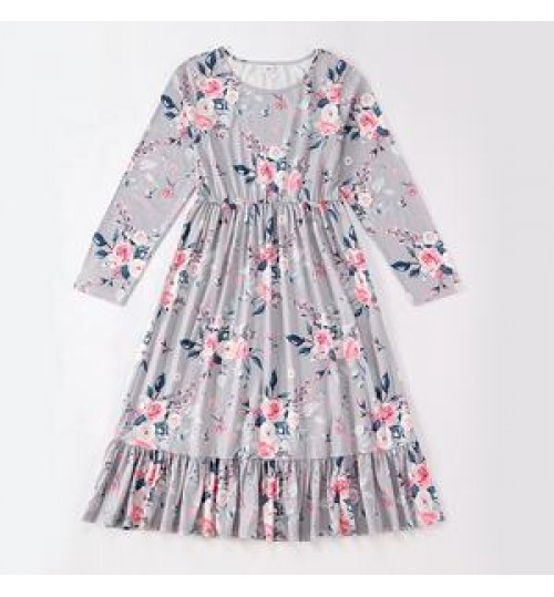 2021 new mommy and me dress Printed Dress mother daughter home pink longuette mommy and me long dress