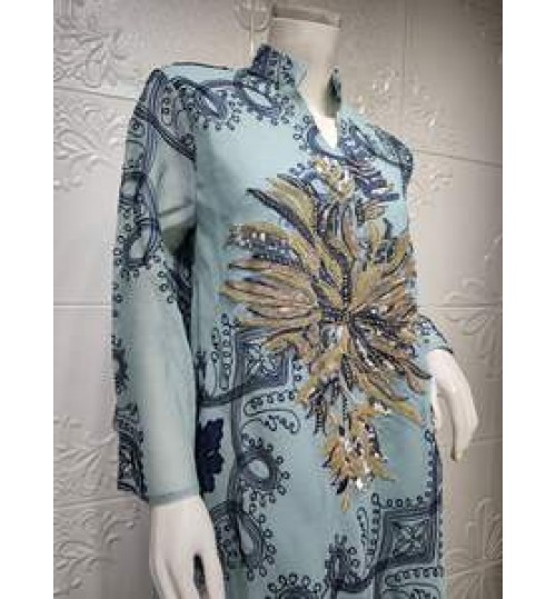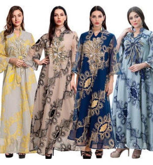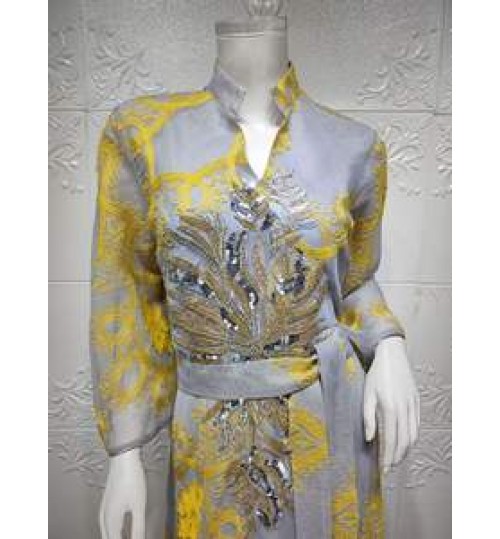 • GANE S-XXL Plus Size Fast Delivery Belt Muslim National Style Women Bobtail Beaded Flower Evening Dress Longuette Eid Dress