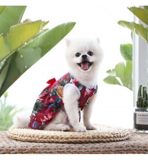 Item | OEM logo Pet Hawaiian kilts female dog vest cat colorful carnival reactive print skirt coat animal party Loose longuette bow |