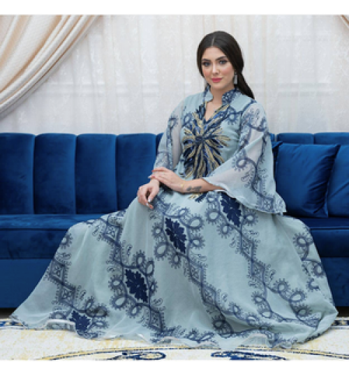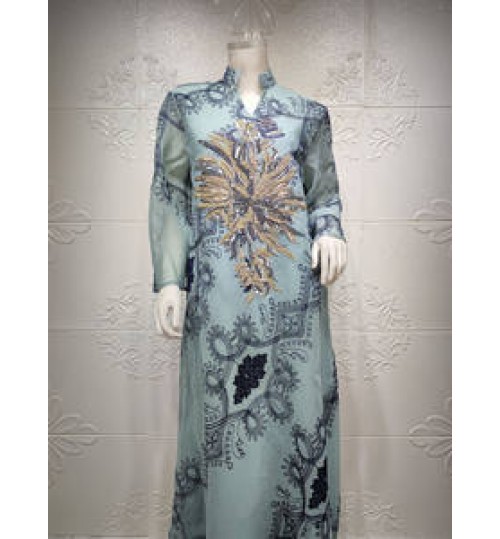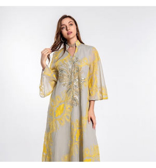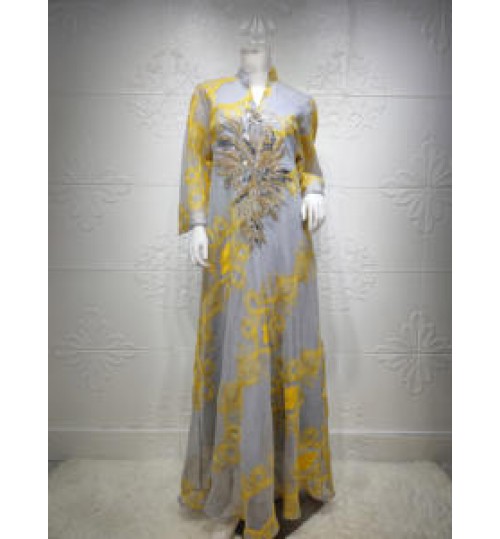 Plus Size Fast Delivery Belt Muslim National Style Women Bobtail Beaded Flower Evening Dress Longuette Eid Dress