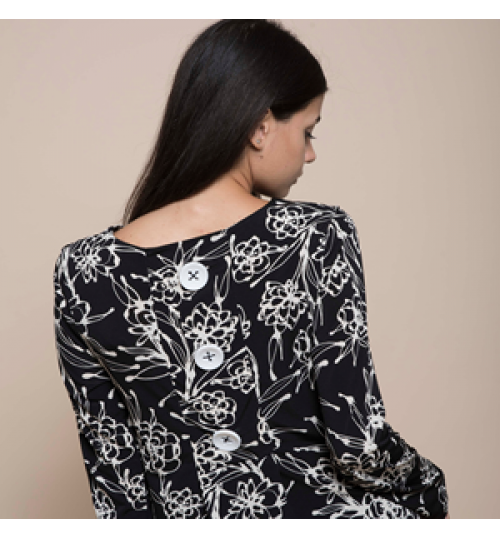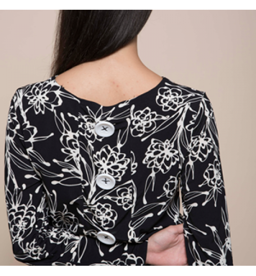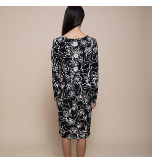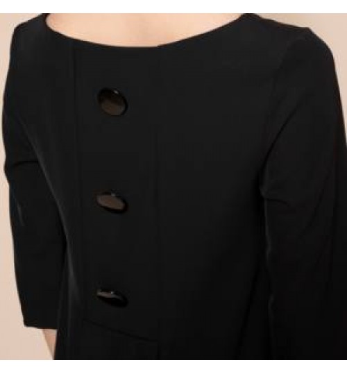 High quality made in Italy fancy longuette sheath dress with boat neckline and buttons on the back, for the day