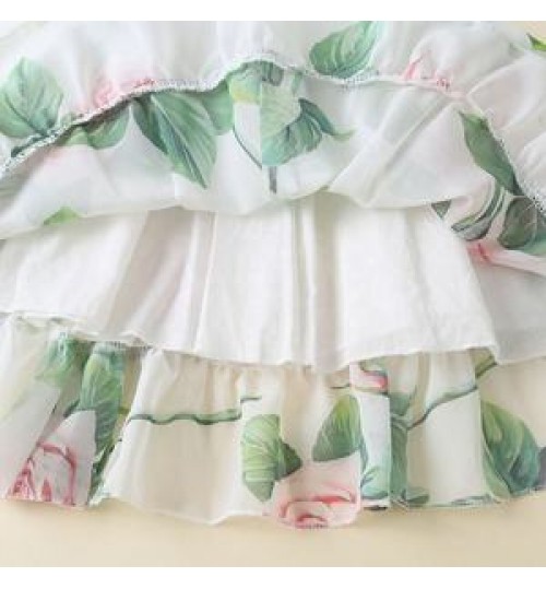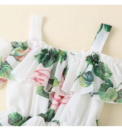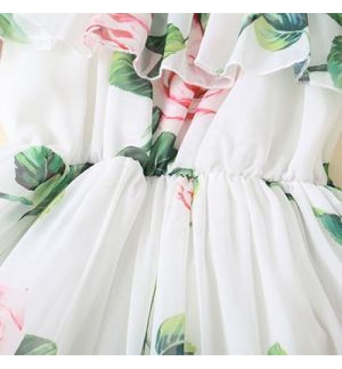 Elegant Soft Casual Rose Print Longuette Twirl Plete Dresses for Girls