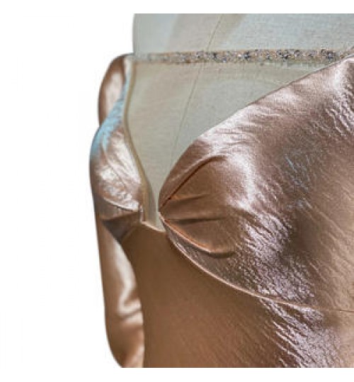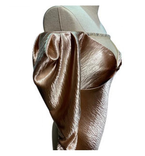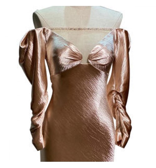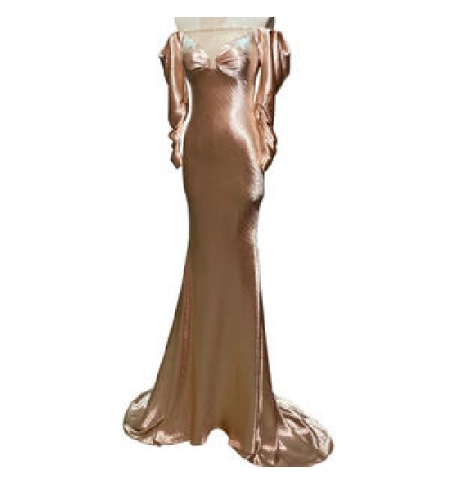 Champagne color luxury, sexy tuxedo, chest pure hand-made diamond chain and perspective network cutting show the gorgeous and sexy of the tuxedo. The puff sleeve silhouette highlights its cute playfulness. |