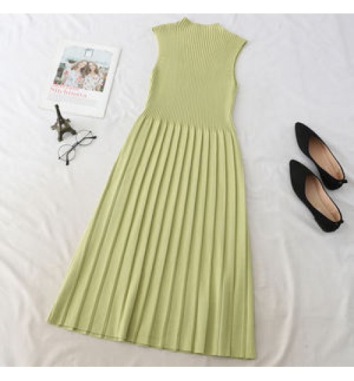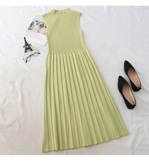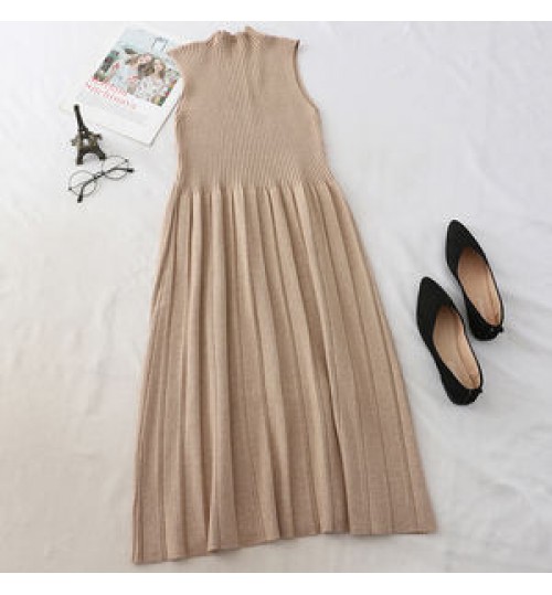 Hot Sale 2022 Autumn New Gentle Style Half Turtleneck A-line Dress Retro Dress Long Sleeveless Vest Casual Dresses