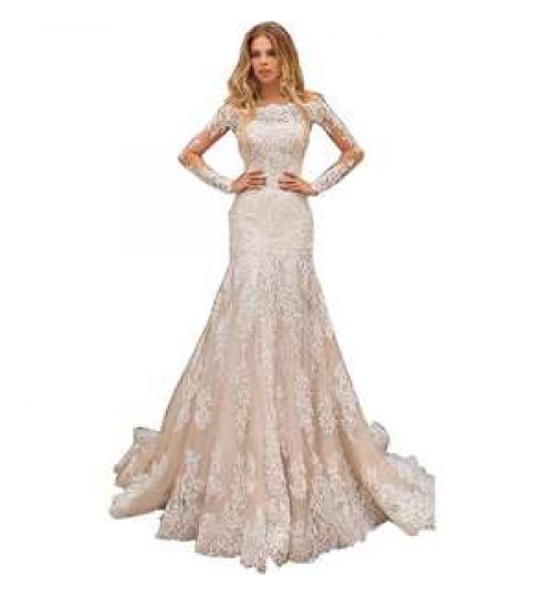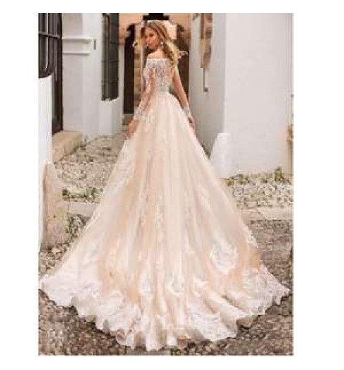 Magicmk Ball Gown Long Sleeve Shoulder Lace Dress White Wedding Dresses Bridal Gowns Wedding Dress