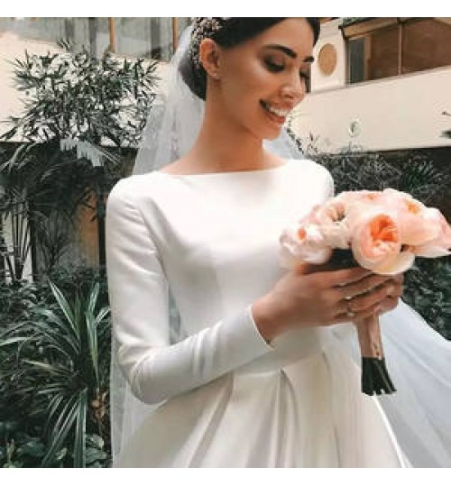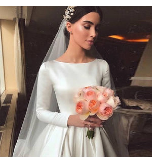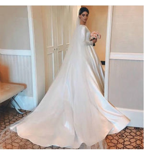 A-Line Stain Long Sleeve Princesses Bridal Gowns Wedding Dresses