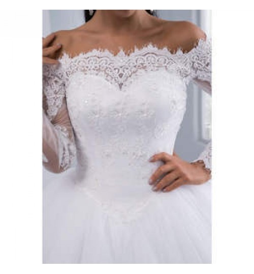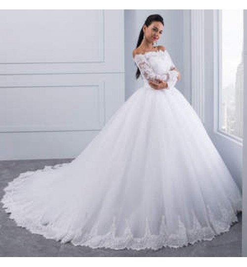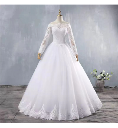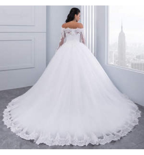 Product Name | Wedding Clothing White Wedding Dress Ball Gown Elegant Embroidered Flower Big Lace Train Long Sleeve Wedding Dress Bridal Gown |