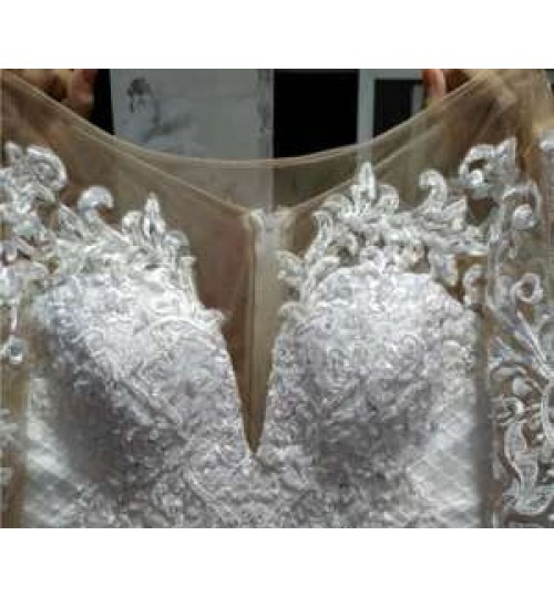 Romantic French White Slim Long Sleeve Tail Support Wedding Dresses For Women Wedding Dress Bridal Gowns