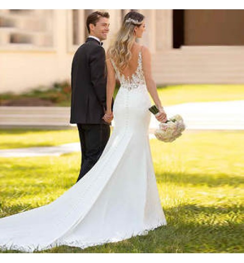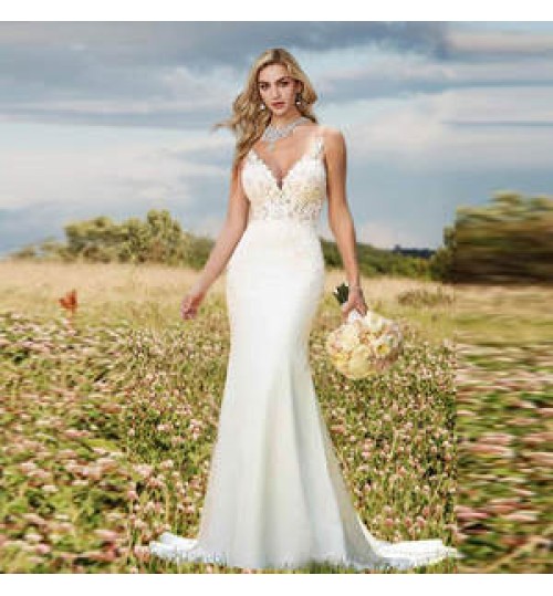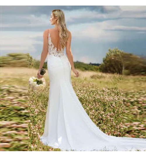 2022 Luxury Mermaid Wedding Dress Trumpet Wedding Dresses V Neck Court Train Lace Spaghetti Strap Bridal Dresses For Women