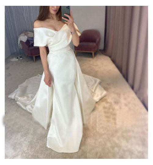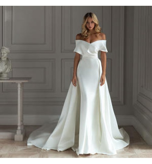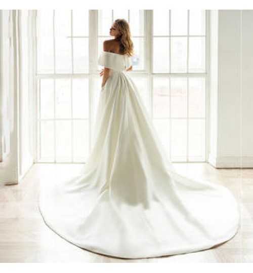 China factory luxury new design off shoulder breathable short sleeve bohemian wedding dress