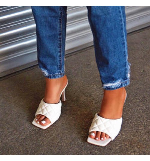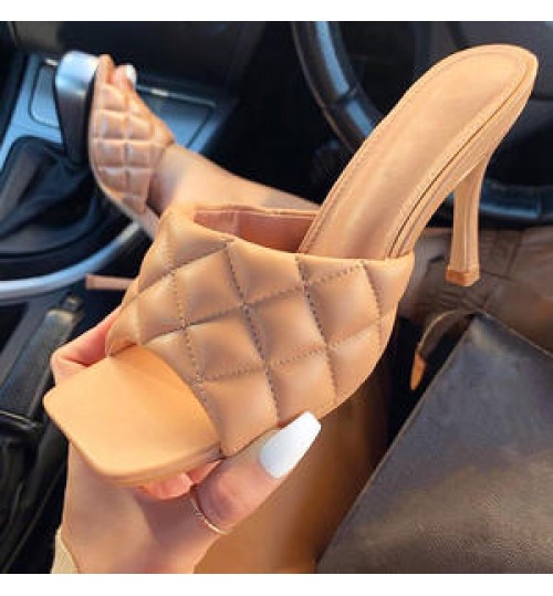 • Deleventh Shoes 801 Custom Slip On Ladies Shoes Nice Lady Heeled Slipper Women's Pump Unique Plaid High Heel Slipper Black Stock