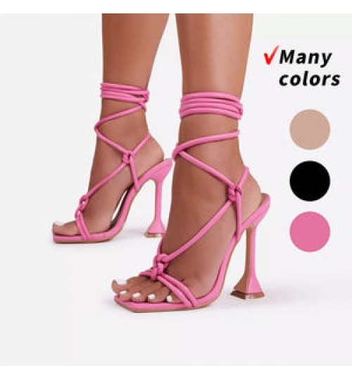 heeled sandals Women Sandalias Con Tacon Square Toe Pink Lace Up 2021 high Heels shoes For Women