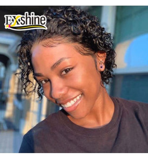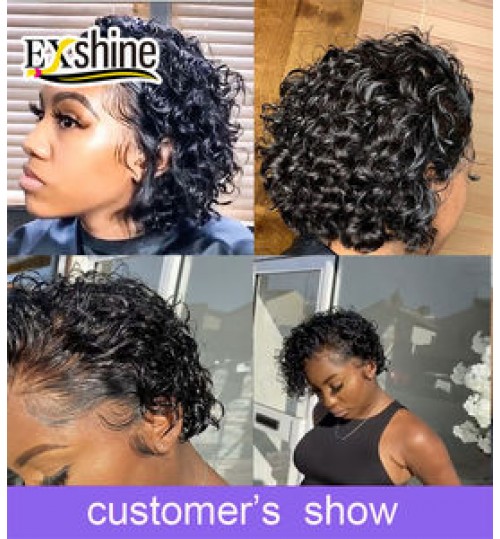 Wholesale Vendors 10A Virgin Cut Short Bob Lace Frontal Pixie Curls Wig, Deep Water Wave Pre Plucked Lace Front Human Hair Wigs