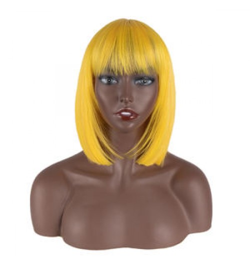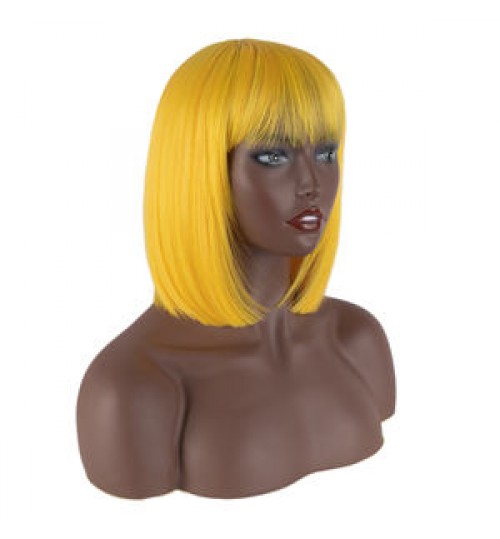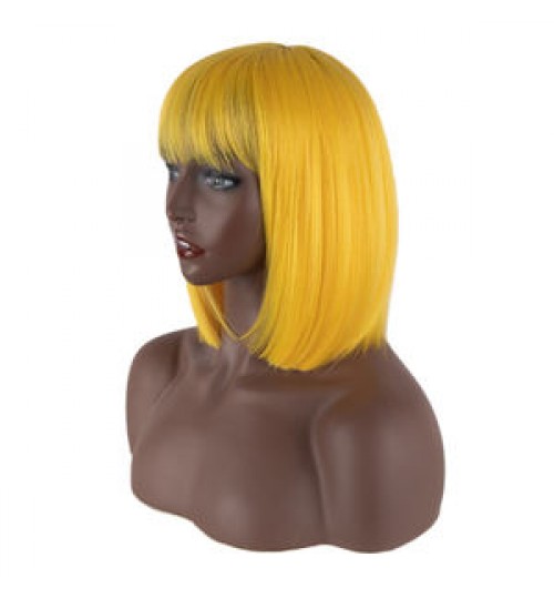 High Temperature Straight Synthetic Wigs With Bangs Short Bob Wig Heat Resistant Hairstyle Ombre Cosplay Wigs For Women