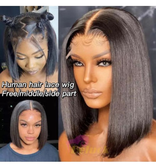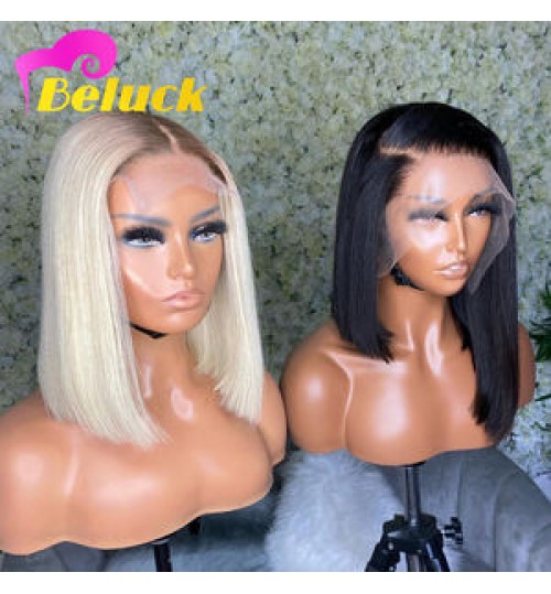 • 180% Bleached Knots HD Lace Frontal Wig,13x4 Short Wig Brazilian Human Hair Wig,100% Bob Wig Human Hair Lace Front Brazilian
