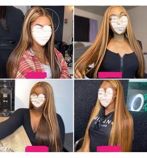 closure straight lace front wig full hd ombre natural coloured human hair wigs bob frontal wigs For Women human hair 30 inch