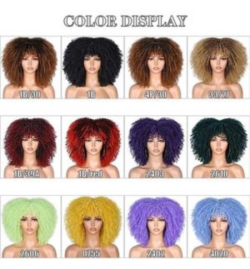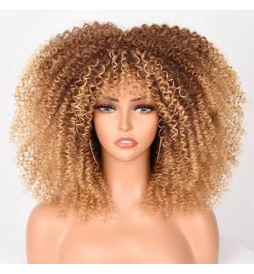$5 sample Wigs Afro kinky curly ombre blonde wigs with bangs for black women 16 inches heat resistant synthetic wig