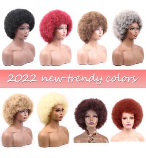 2022 Cheap Wholesale Hair 70S Big Size Puff Kinky Curly Wave Short Wig High Temperature Synthetic Afro Wigs For Balck Women
