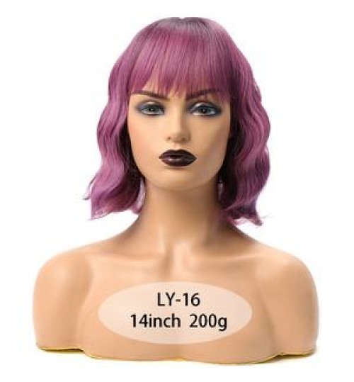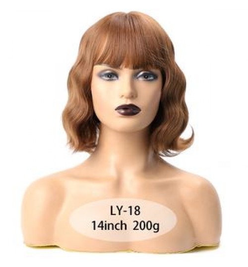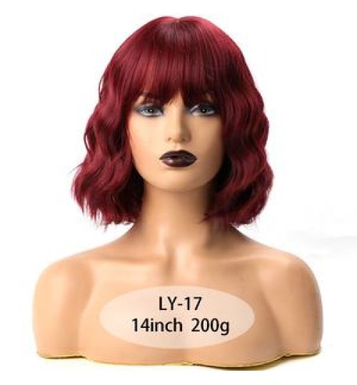 Short Wavy Wig with Bangs Red Synthetic Wigs For Women Natural Brown Mixed Black Hair Bob Wigs Heat Resistant Fiber