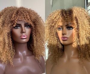 $5 sample Wigs Afro kinky curly ombre blonde wigs with bangs for black women 16 inches heat resistant synthetic wig