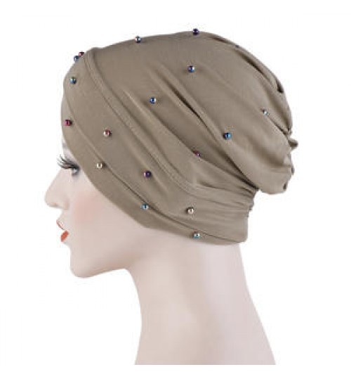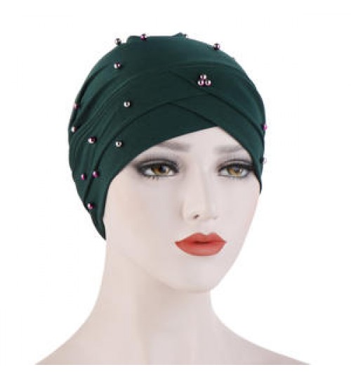 Item Name | African Women Headwrap Crystal Linen Forehead Cross Beanies Turbans Hat Arab Muslim Female Beaded Hair Turban Head Wrap |