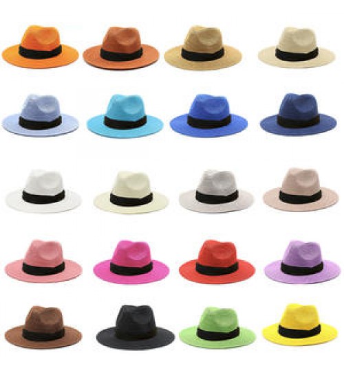 Factory wholesale straw sun fashion visor roll brim hats women wide brim straw panama hat fedora beach sun hat UPF50+
