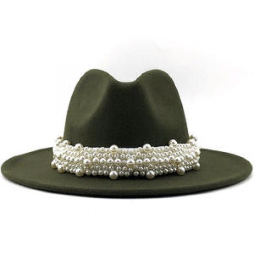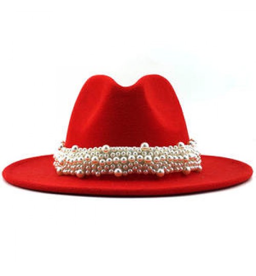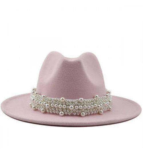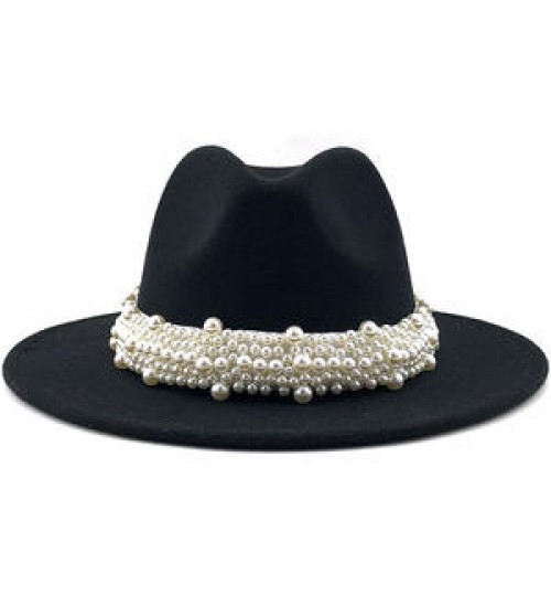 New Elegant Lady Winter Wide Brim Hat Women Wool Fedora Felt Hat With Pearl
