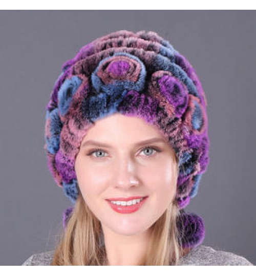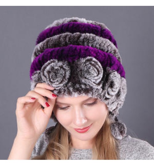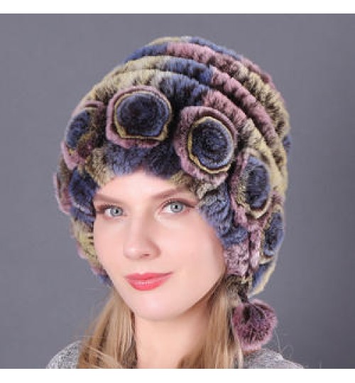 wholesale Womans rex Rabbit Fur Hat Warm Winter Skull Beanie Knit Hats lady winter hat