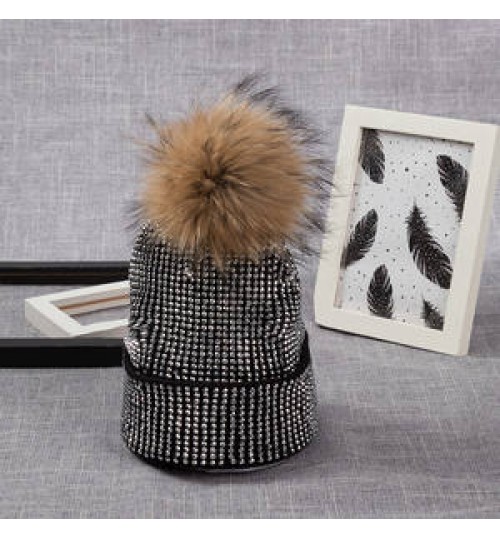 h100 knitted hat lady winter fur pom pom beanie hats rhinestones hats