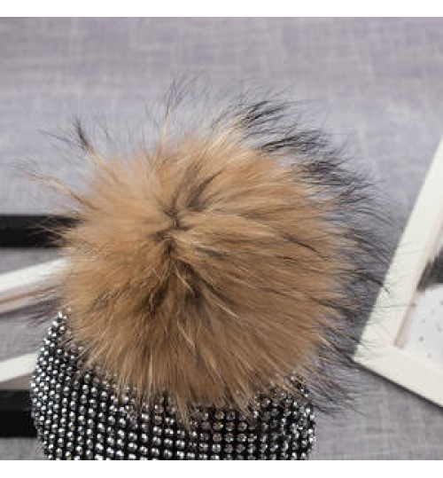 Description | knitted beanie hat with 100% real raccoon fur pompom |