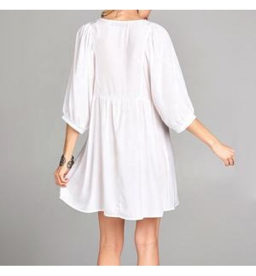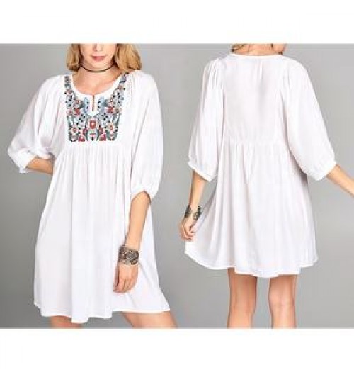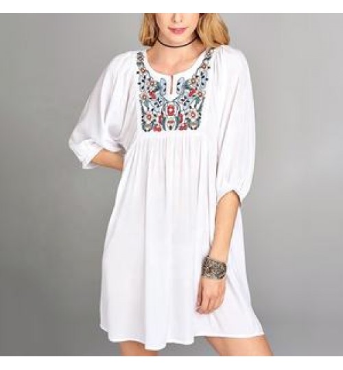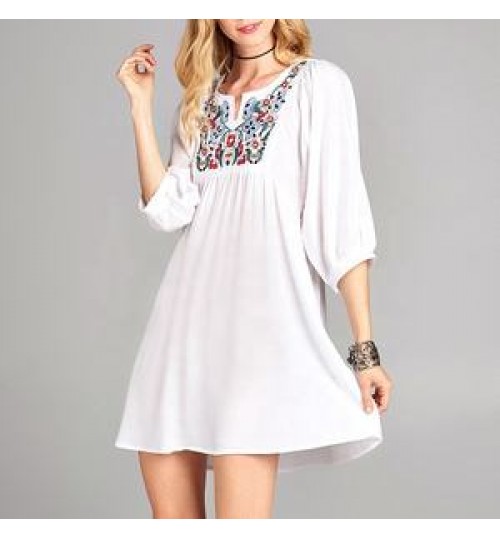 Blouses Women OEM 3/4 Sleeve White Blouses Midi Elegant Women Dress Cotton Floral Embroidery Tunic Blouses