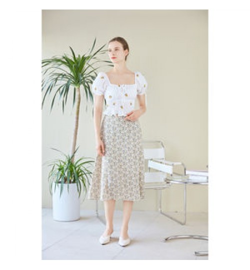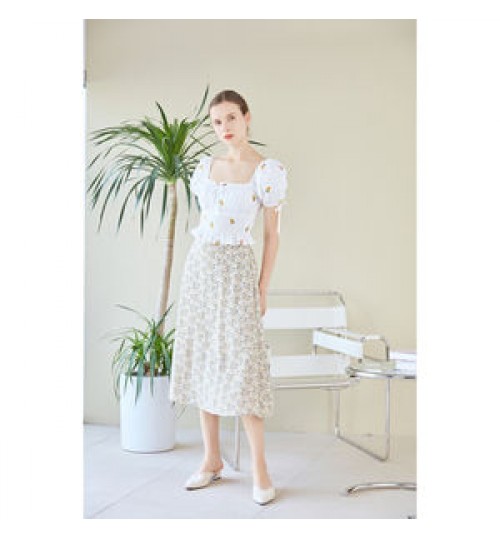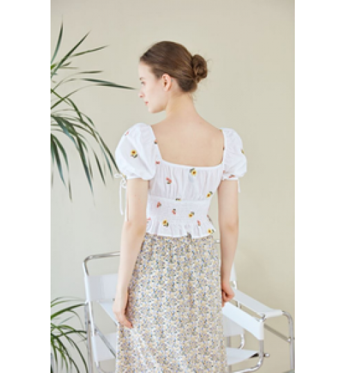 Woman Blouse French Woman Embroidery White Tops Ladies Summer Elegant Short Blouse