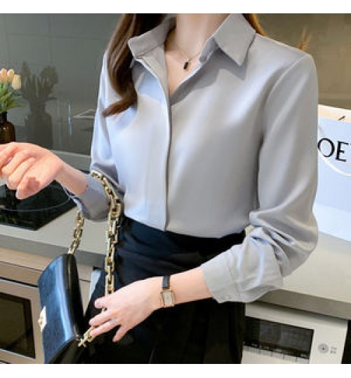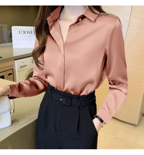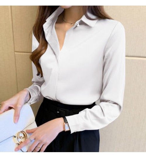 Silk Women White Shirt Women Long Sleeve Shirts Blouse Office Lady Satin Silk Blouse Tops Plus Size Women's Blouses & Shirts