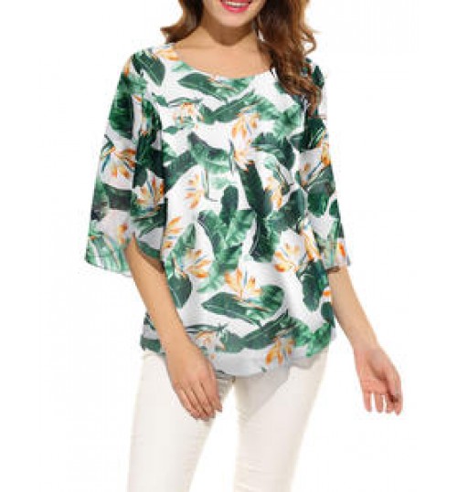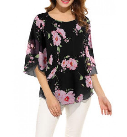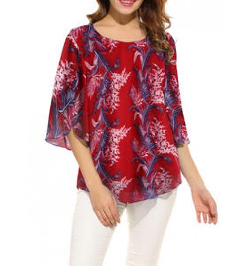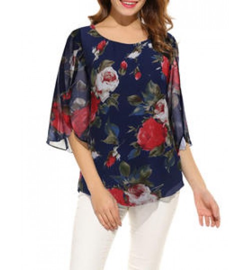 custom new lady five-point flare sleeve floral chiffon blouse women tops