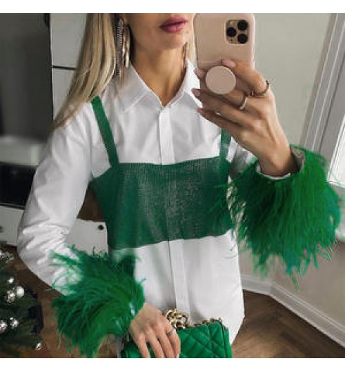 2022 Bettergirl Hot Sale Breathable Fashion Clothes Office Lady White Blouse Feather Long Sleeve Tops Women's Blouse & Shirts