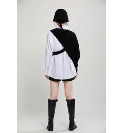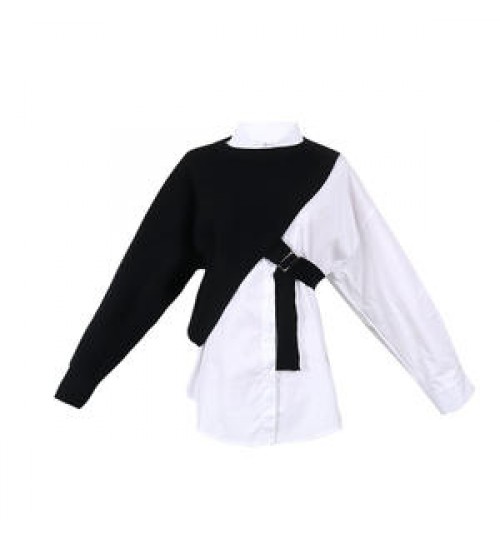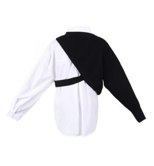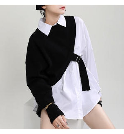 New Fashion Best Selling Women Fall Spring White Blouse Tops Patchwork Sweater Plus Size Women'S Blouses & Shirts