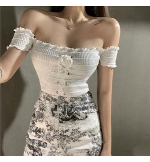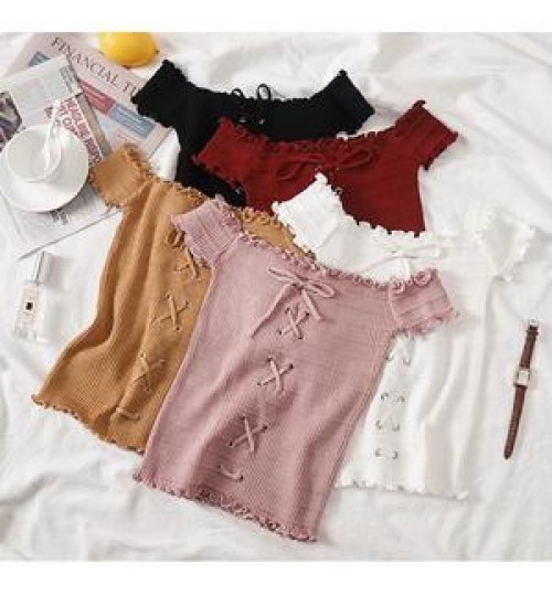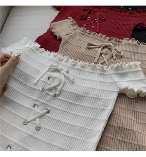 • 2020 Wholesale New Design Women Fashion Off-Shoulder Top Ladies Casual Short Sleeve Knitted Blouse