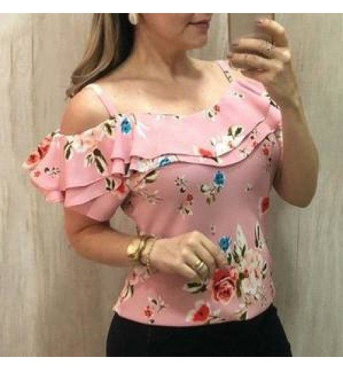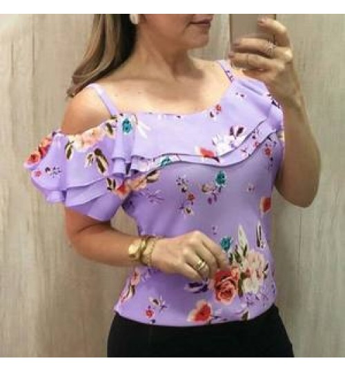 • 2022 ladies summer plus size shirts female floral print off shoulder short sleeve bodycon tops women casual blouse