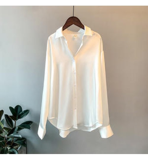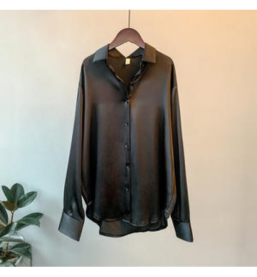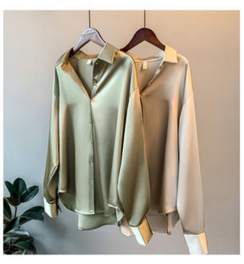 Spring Women Top Fashionable 2021 Long Sleeves V Neck Satin Blouse Vintage Satin Blouse