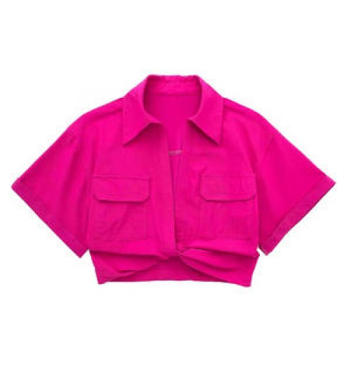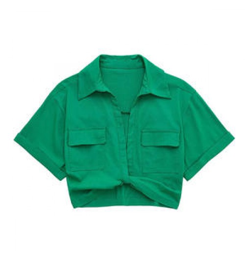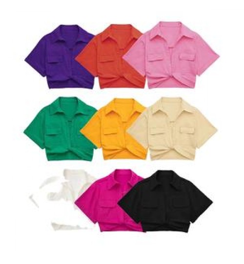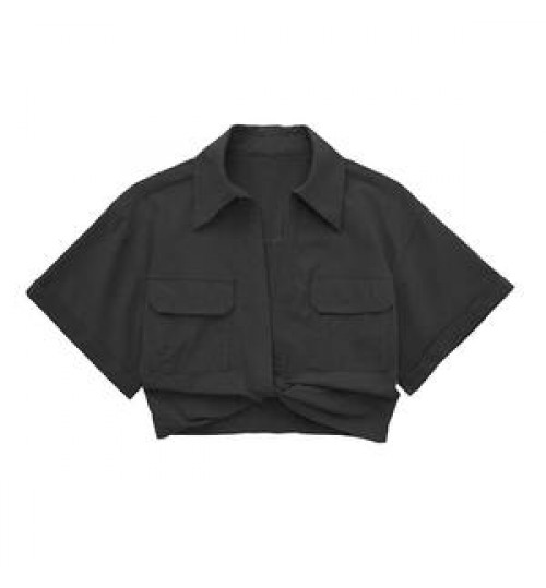 ZATRHMBM 2022 Female Clothing New Fashion knotted Short Sleeve V neck Vintage Crop Top Pocket Accessories Chic Woman Blouse