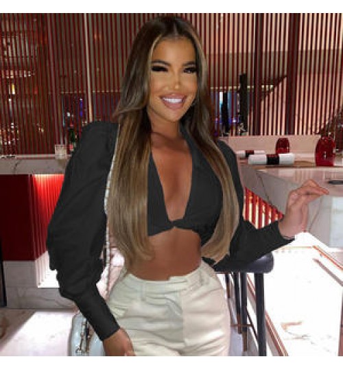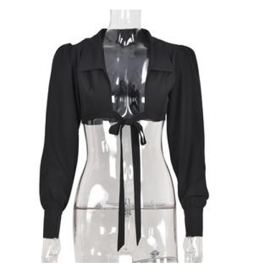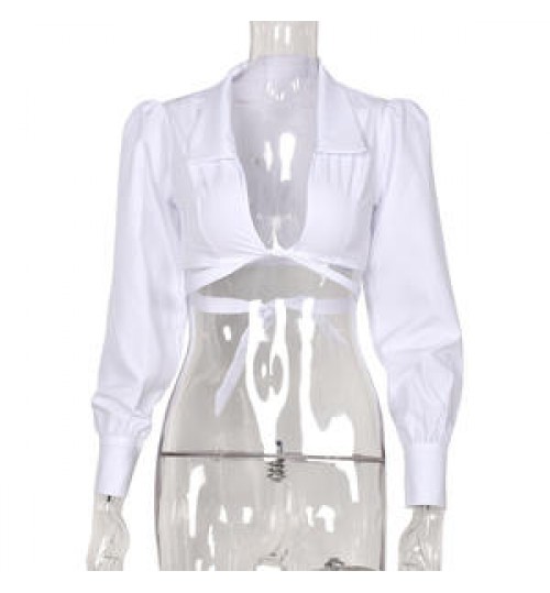 Spring 2022 Women S Clothing Hollow Out Slim V-Neck Long Sleeve Blouse Women Crop Top Shirt Fashionable Tops