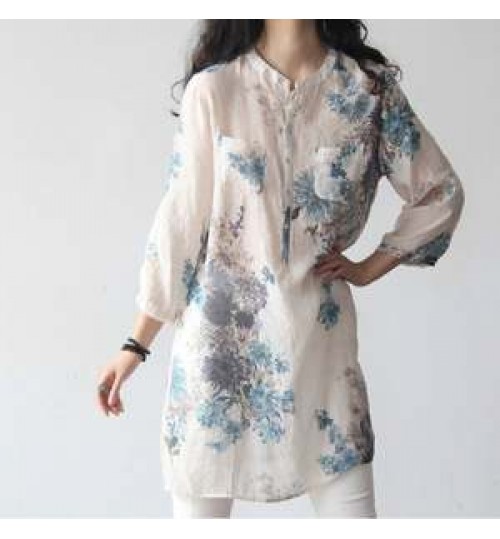 fashion women blouse summer long sleeve large size flower ladies blouse