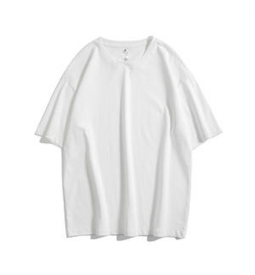 • Factory wholesale custom large new pure white thick cotton loose shoulder short sleeve T - shirt men T - shirt