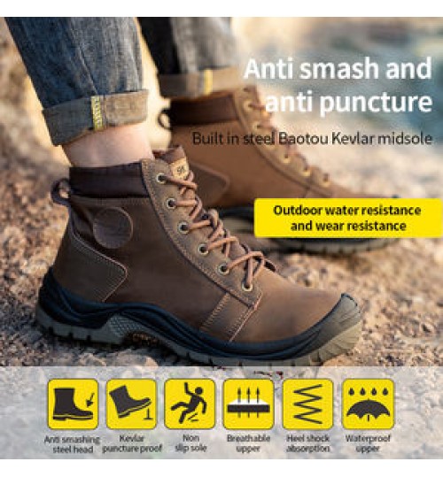 • Cowhide breathable wear-resistant labor protection shoes men safety shoes waterproof boots for men work