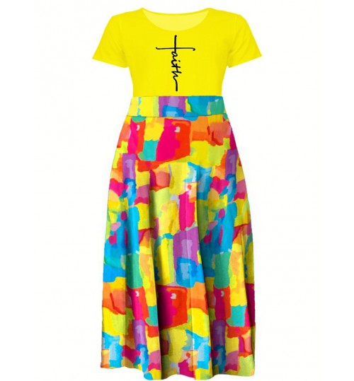 LW Plus Size Faith Letter Print Patchwork A Line Dress