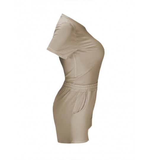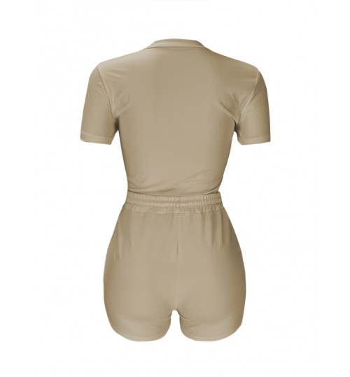 LW BASICS Plus Size Round Neck Drawstring Shorts Set