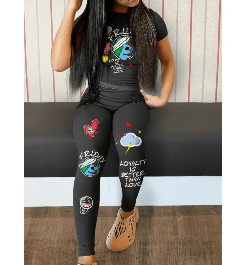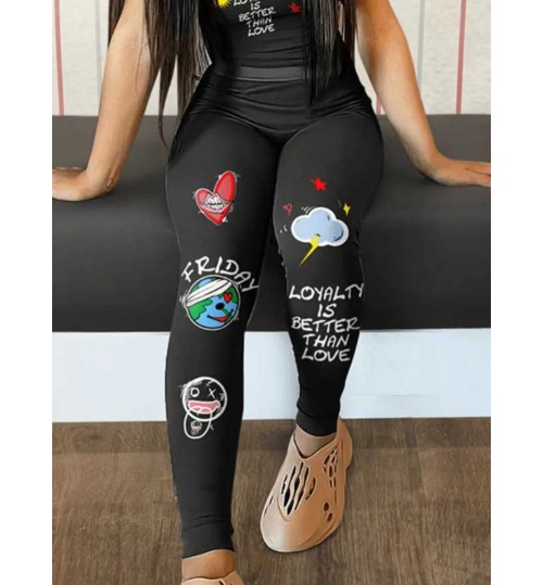 LW Cartoon Loyalty Is Better Than Love Print Pants